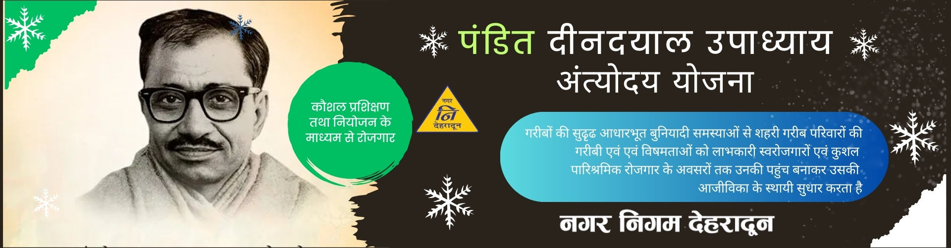 1 अप्रैल 2014 में उत्तराखण्ड़ राज्य में मिशन की शुरूआत की गइ्र्र । वर्तमान राज्य के 16 शहरों जिनमें राज्य के सभी 06 नगर निगमों ;देहरादून ,हरिद्धार ,रूड़की , काशीपुर, रूद्रपुर, हल्द्धावनी ,काठगोदामद्ध के अलावा पिथौरागढ़ ,अल्मोड़ा ,बागेश्वर ,चम्पावत , नैनीताल , रूद्रप्रयाग, चमोली , गोपेश्वर , टिहरी , पौडी, एवं उत्तरकाशी इत्यादि शहरों ;क्।ल्.छन्स्डद्ध में योजना संचालित की जा रही है। दीनदयाल अन्त्योदय योजना . राष्ट्रीय शहरी आजीवका मिशन क्।ल्.छन्स्ड के अंतर्गसत निम्नाकित के अनुरूप सेवाएं / सुविधाएं उपलब्ध है।
