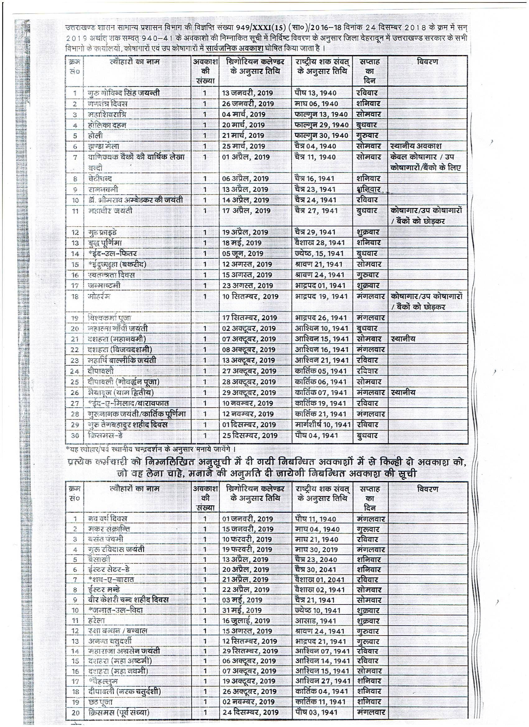Public Holiday List 2019
