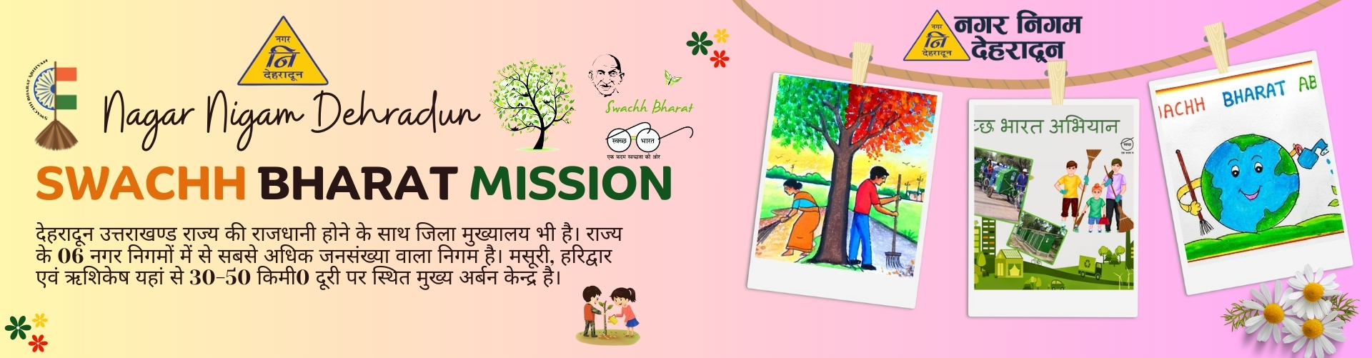 4- स्वच्छ भारत मिशन के अन्तर्गत निकाय स्तर पर देहरादून नगर निगम द्वारा भूमिगत कूड़ेदान स्थापित किये गये है। स्रोत पर ही कूडा पृथकीकरण एवं निस्तारण हेतु पहल की गयी है साथ ही साथ कम्पोस्टिंग द्वारा जैविक कूडे का निस्तारण करने हेतु कार्ययोजना तैयार की गयी है।